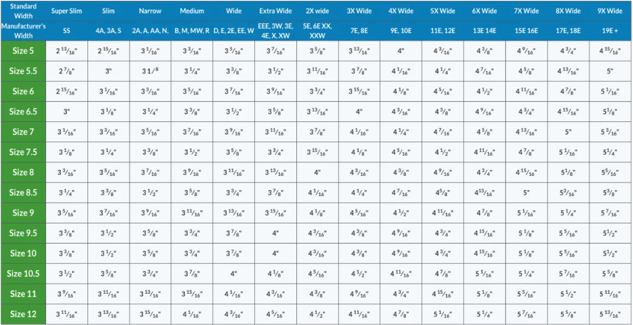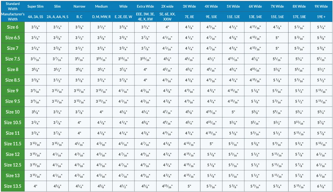 You can find your correct shoe size by measuring your feet and comparing the measurements to our size chart.